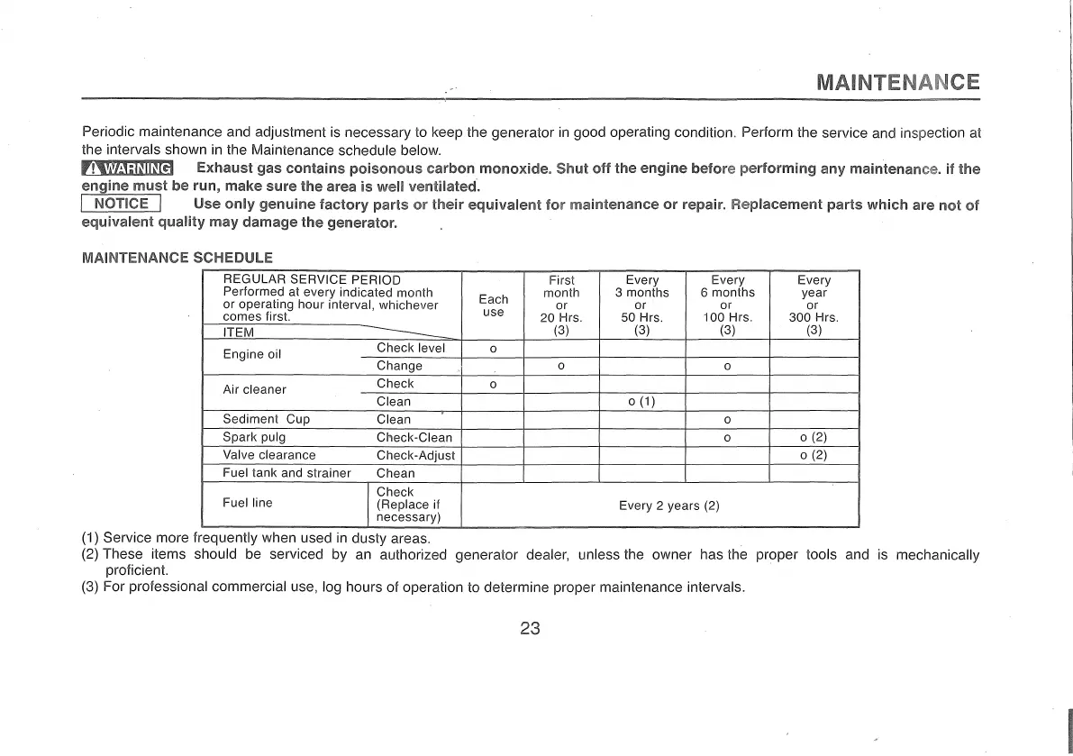 authorized generator dealer, unless the owner has the proper tools and