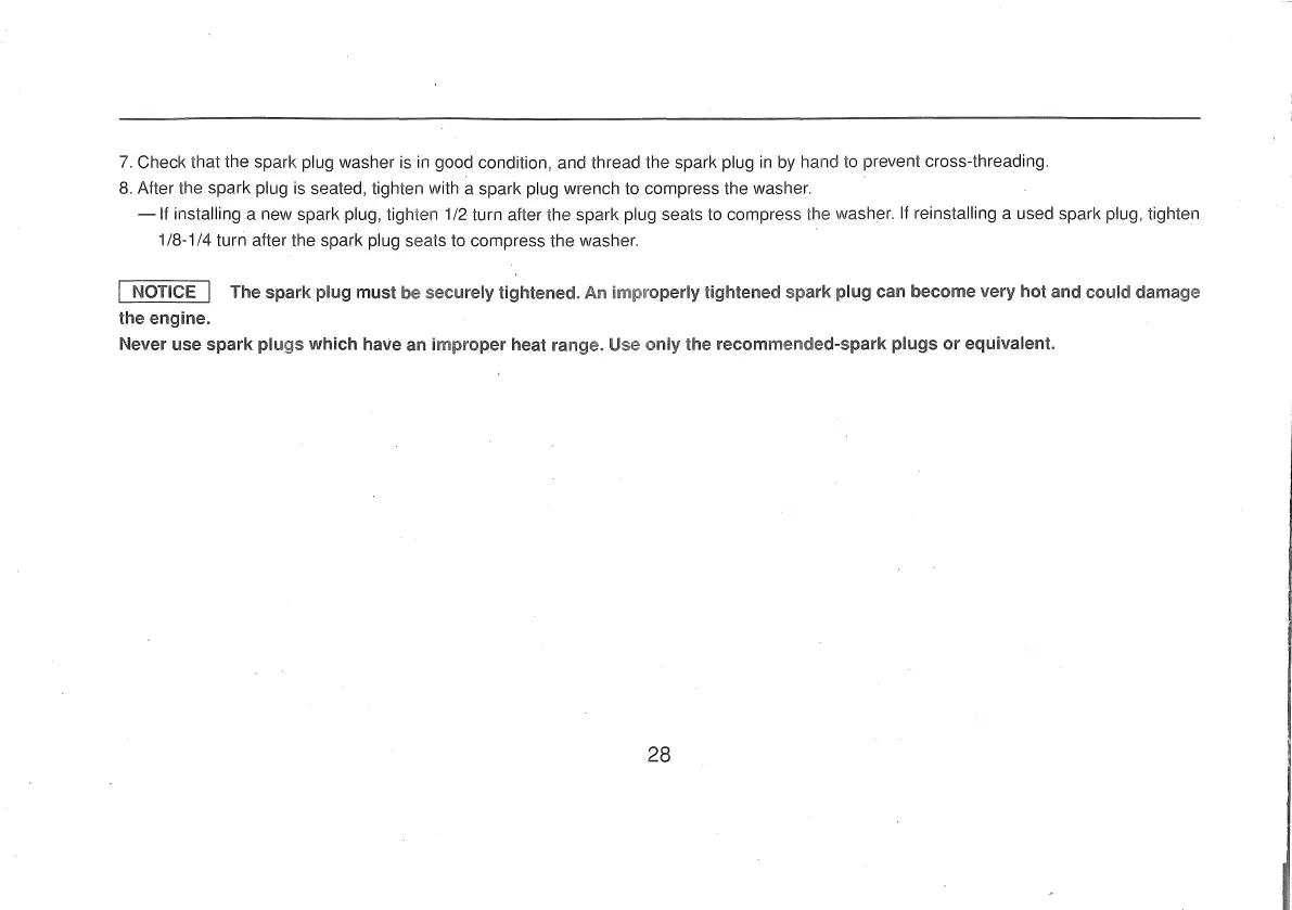installing a new spark plug, tighten 1/2 turn after the spark plug seats