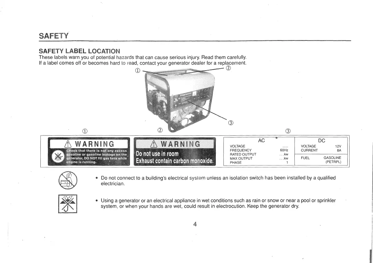electrocution. Keep the generator