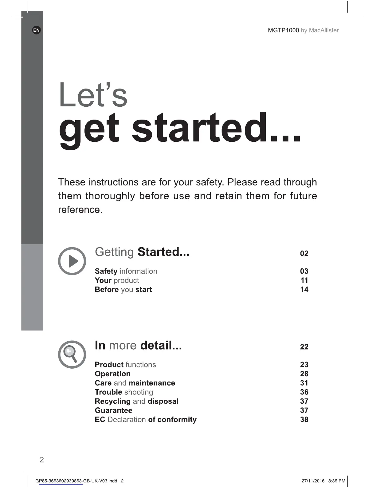 Mac allister MGTP1000 - Contents