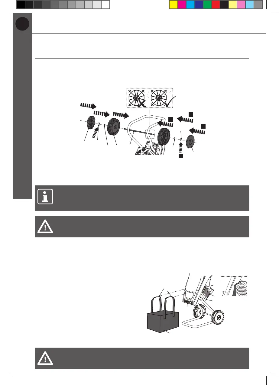 10. Carefully place the product on its wheels (13) and ensure that wheels (13)