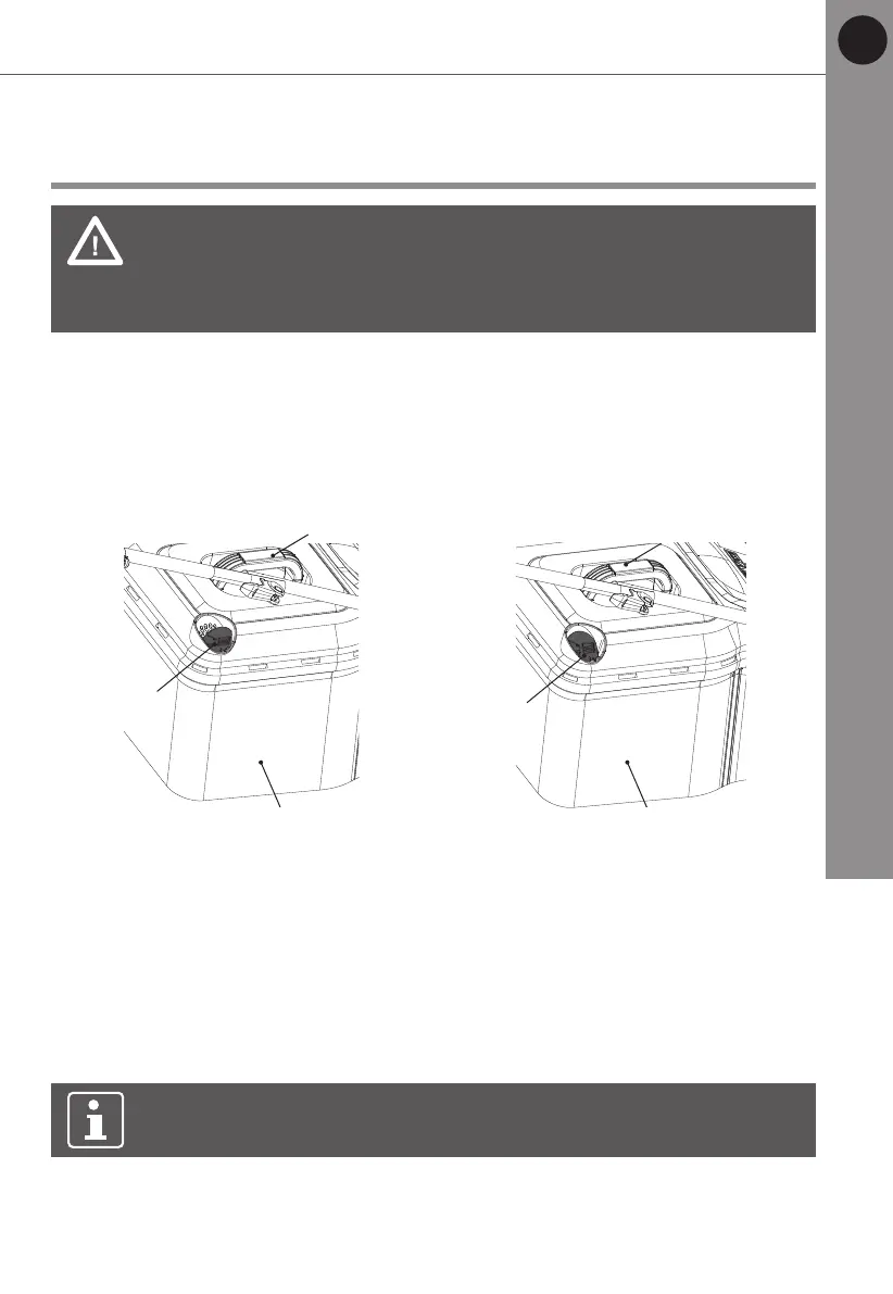 Attach the grass catcher (8). Always carry the grass catcher (8) by its carry