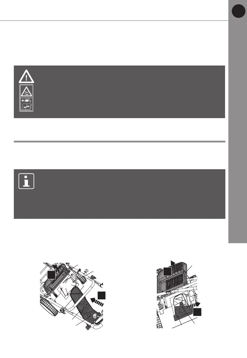 4. Remove the grass catcher by its carry handle (7a).