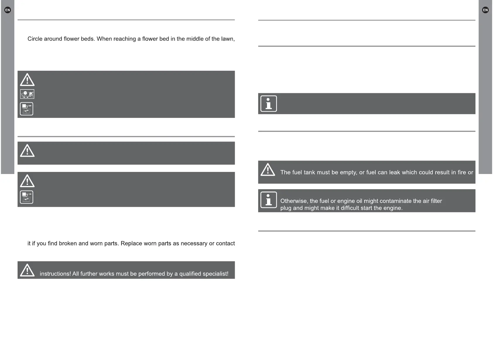 WARNING! Only perform repairs and maintenance work according to these