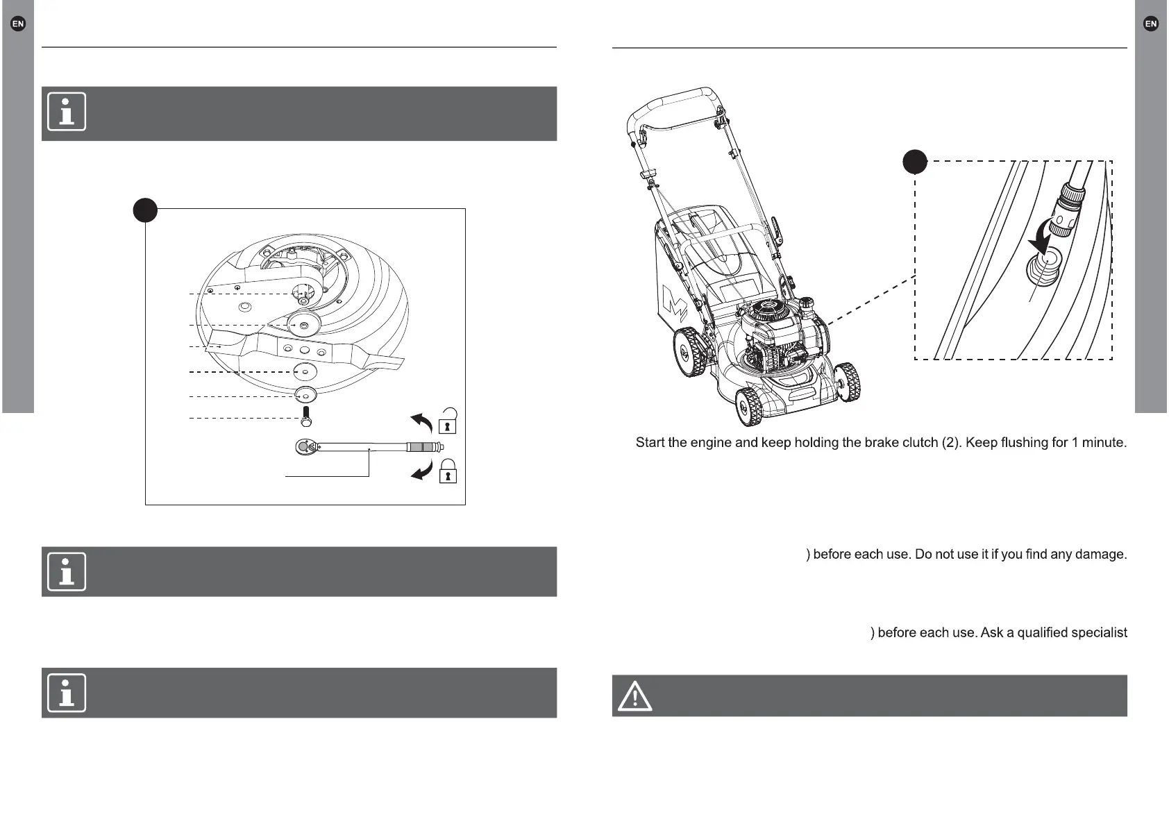 4. When the grass clippings stop coming out of the underbody, stop the engine.