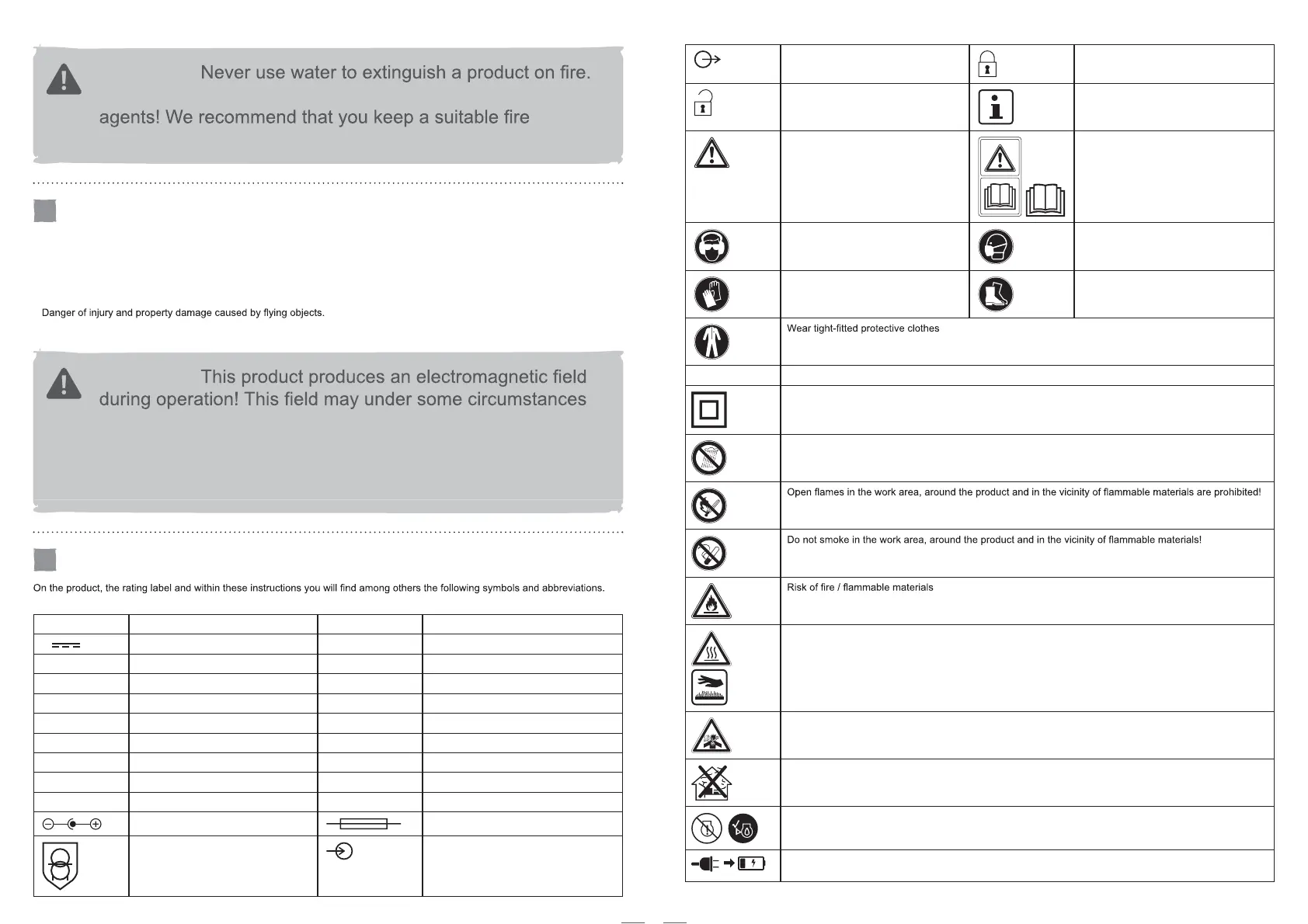Hot surface, do not touch! High temperatures on the product’s surfaces and structural parts that could