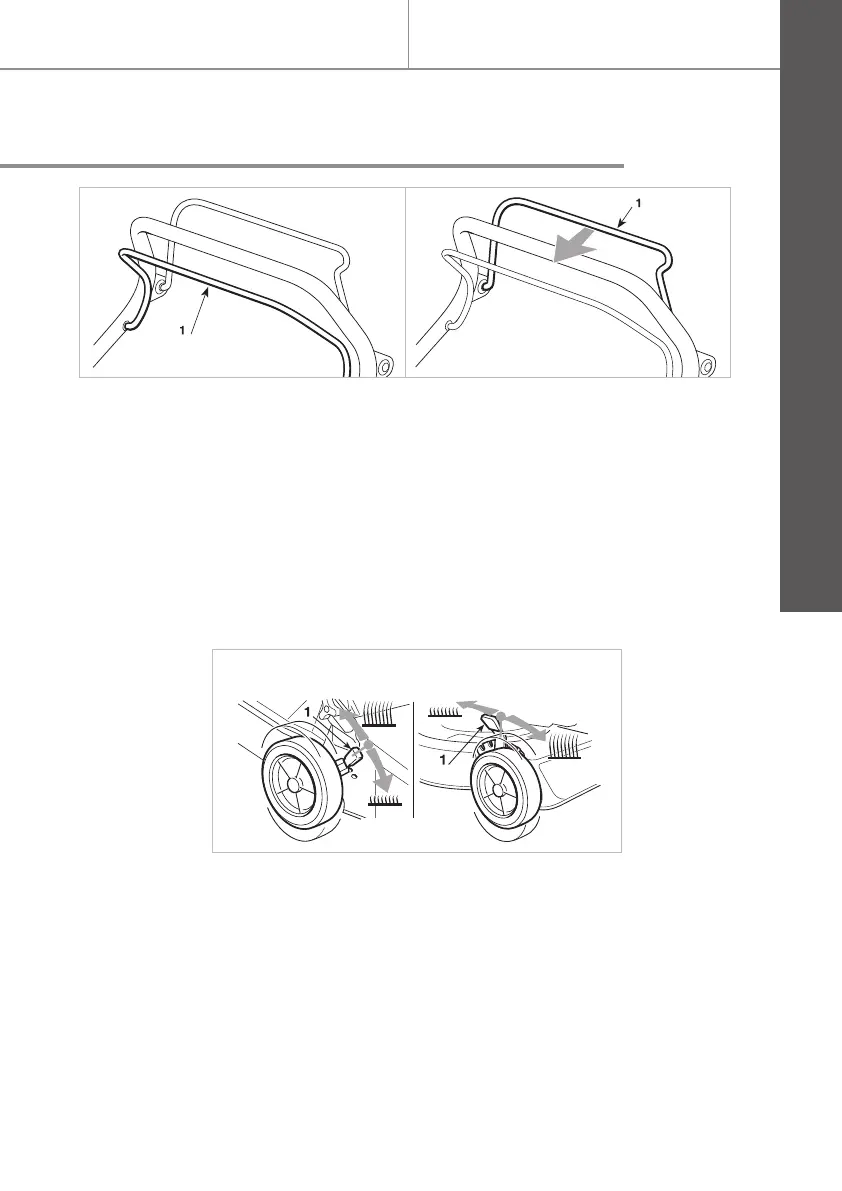 The cutting height is adjusted by the levers (1).