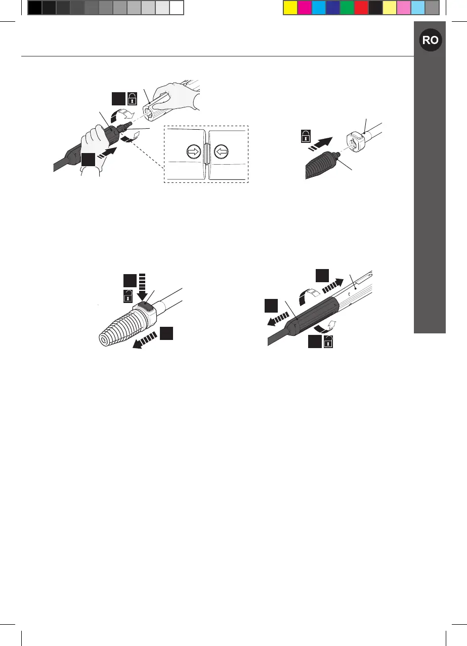 > Apăsați butonul de eliberare (8f) (Fig. 7, pasul 1) și scoateți duza (pasul 2).