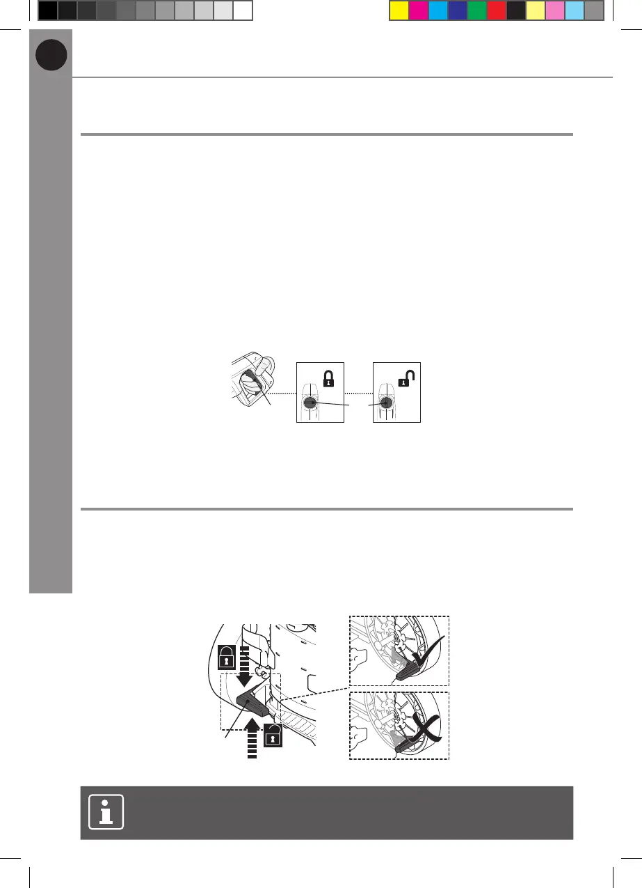 1. Appuyez sur la pédale de frein (14) pour bloquer la roue arrière. Déplacez