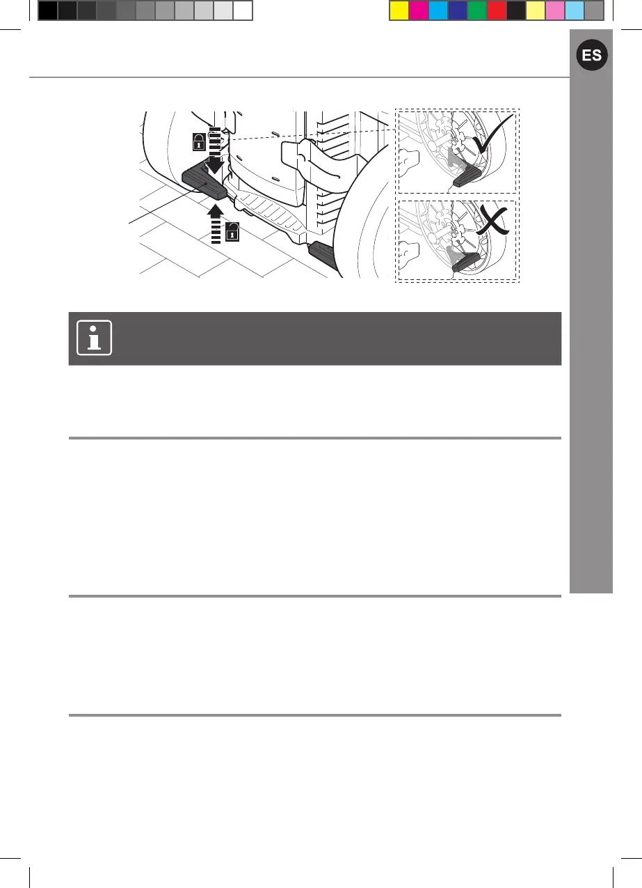 2. Levante el pedal de freno (14) para desbloquear la rueda trasera.