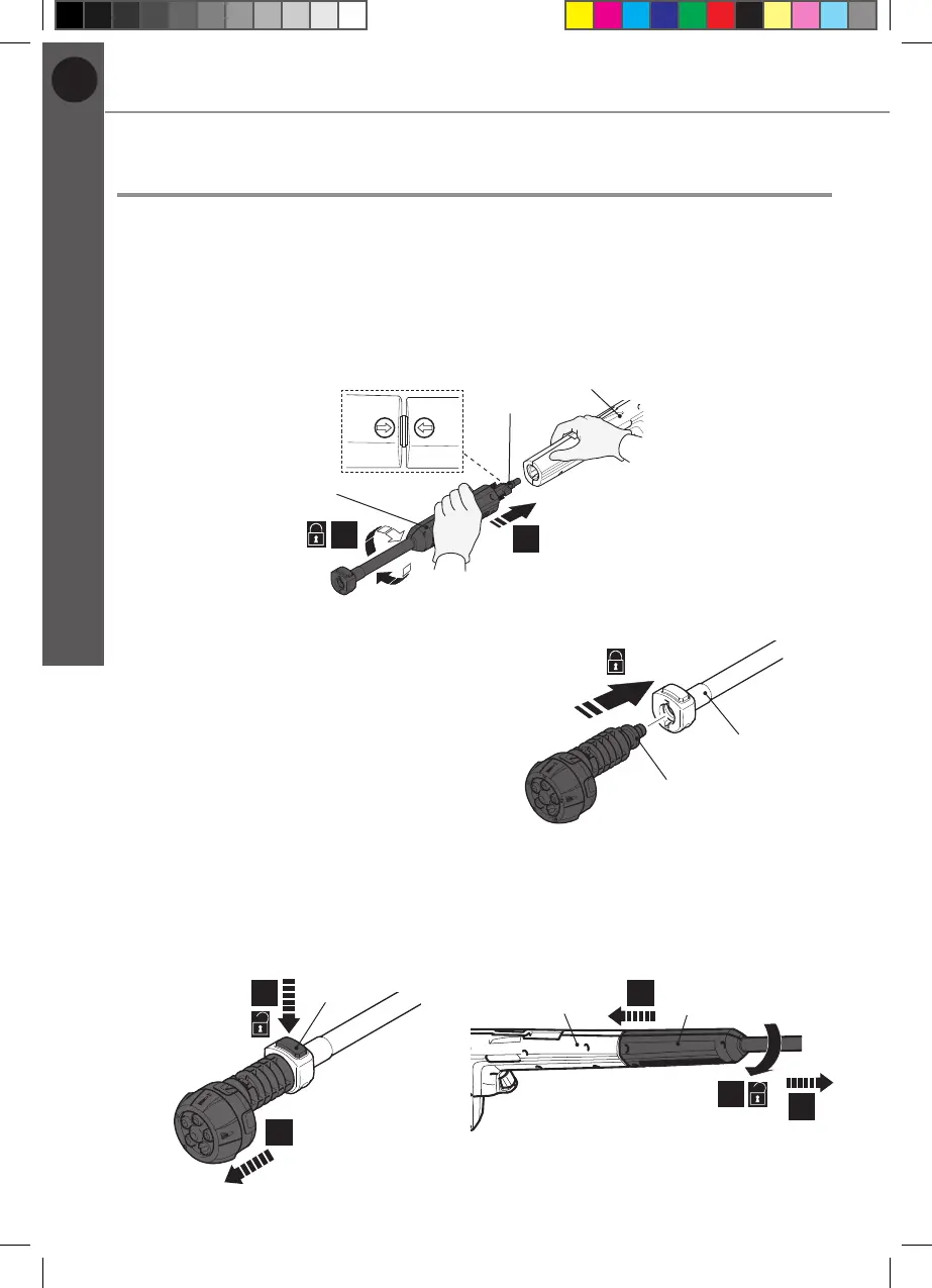 1. Align and insert the tongues (7a) of the extension lance (7) into the grooves