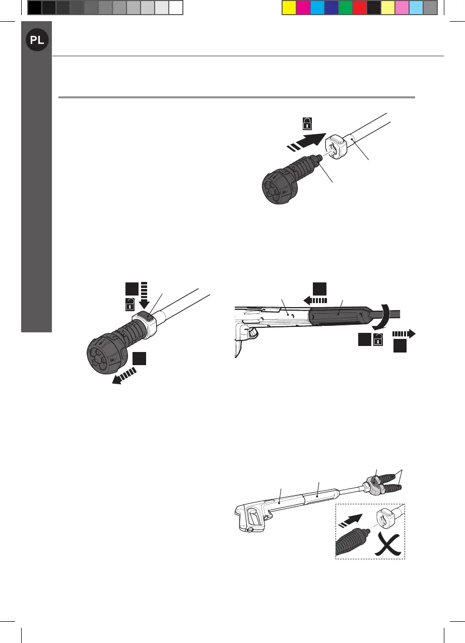 2. Wciśnij lancę długą (7) do pistoletu natryskowego (9) (Rys. 6, krok 1) i obróć