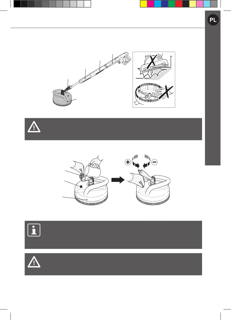 ścianach. Nigdy nie dotykaj obracającej się dyszy podczas pracy.
