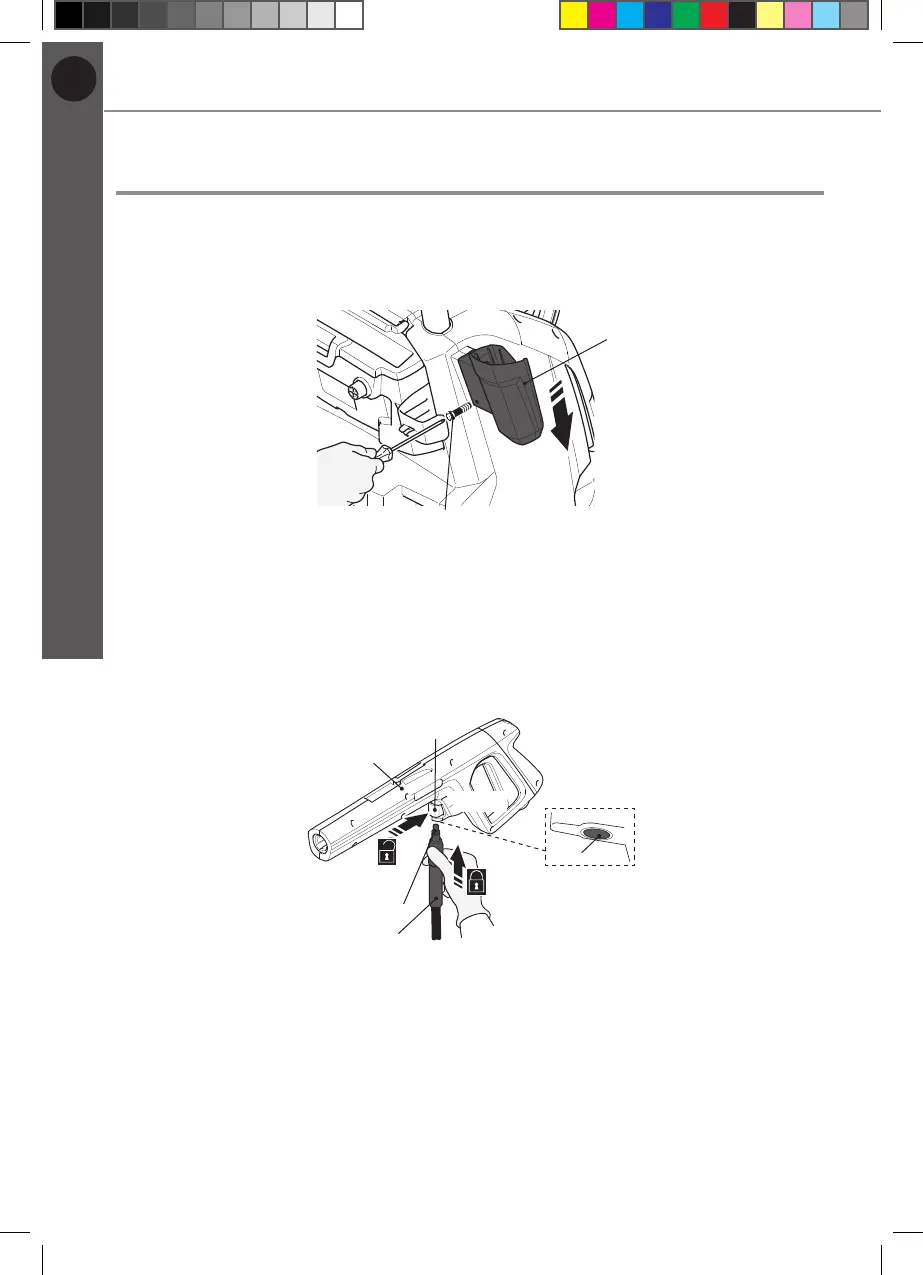 1. Coulissez le support du pistolet de pulvérisation (8) sur le produit et fixez-le