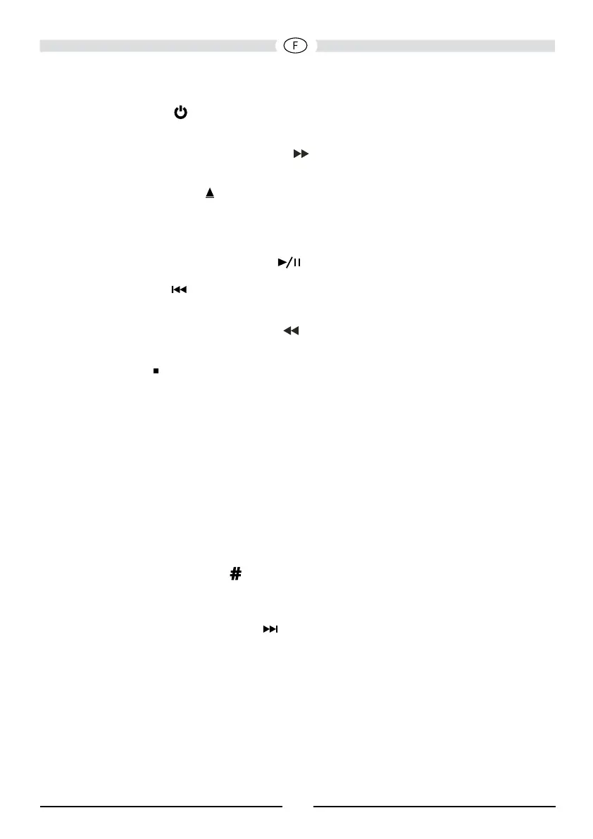 chapitre, piste ou chanson pendant la lecture d’un disque. Appuyez sur cette touche en mode radio