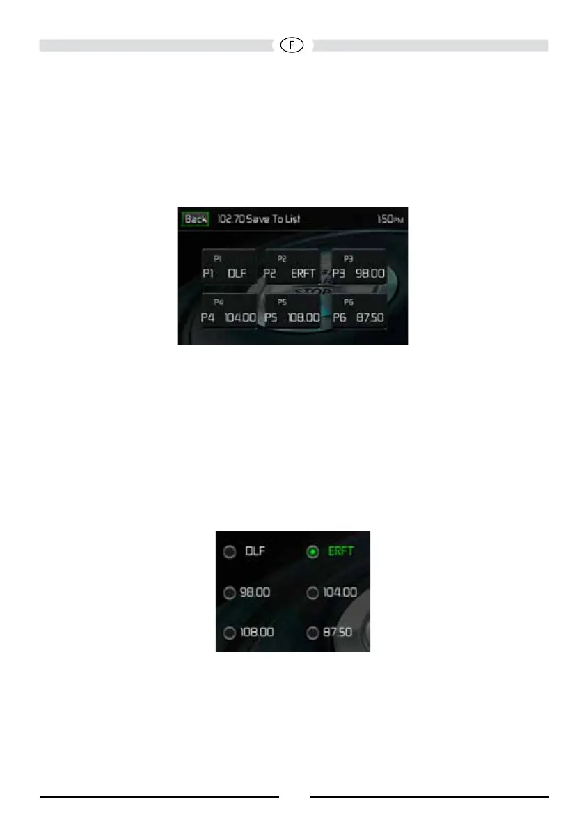 d’écoute. La fréquence radio s’afche en haut du menu. Le numéro préréglé apparait en