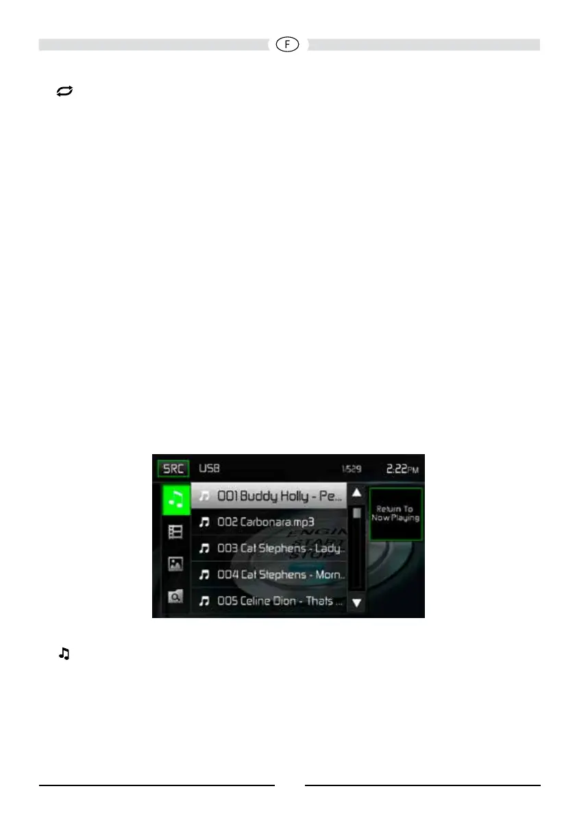 une fois cette icône et la piste en cours de lecture sera répétée. L’icône s’allumera sur l’écran