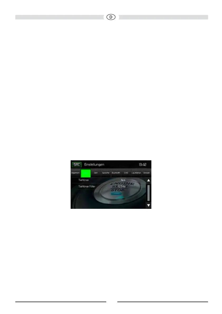 Im Untermenü AUDIO können Sie den Subwooferausgang ein- bzw. ausschalten sowie eine
