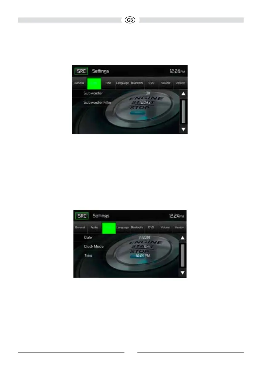 Subwoofer Crossover: Touch a crossover frequency (80Hz, 120Hz or 160Hz) to set a cut-off
