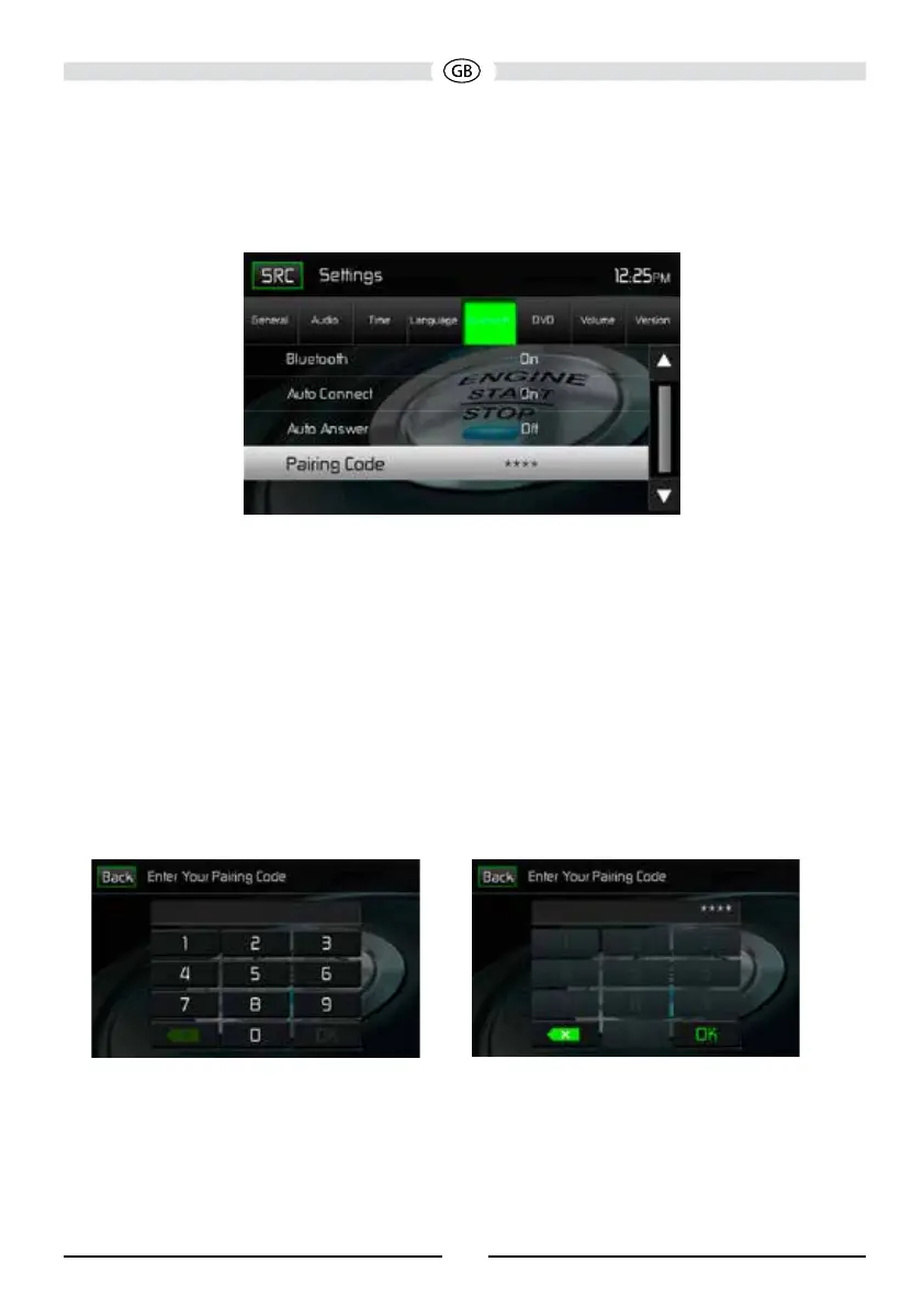 Pairing: This feature allows the user to create a unique 4 digit code for pairing Bluetooth devices