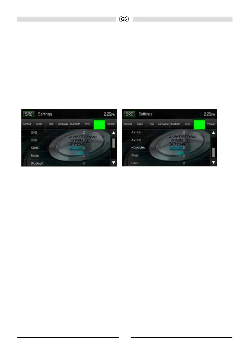 AV-IN2: Touch the AV-IN2 icon to enter the setting, then use the ▲ or ▼ icons to increase or
