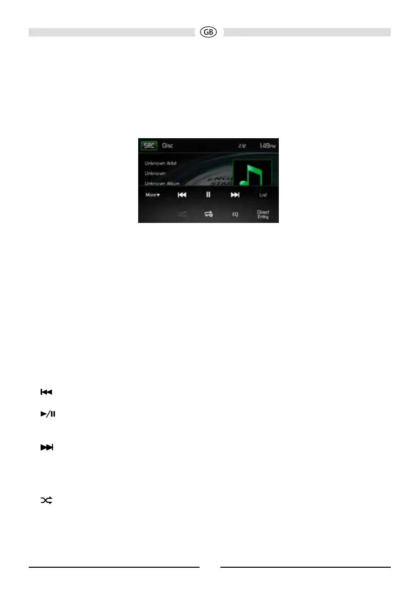 ) Play/Pause: Touch this icon to begin disc playback. Touch this icon again to pause disc