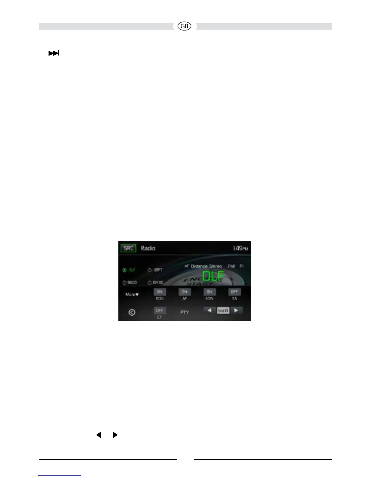 ( ) Next/Manual Seek: Touch this icon to momentarily seek the next available radio station or