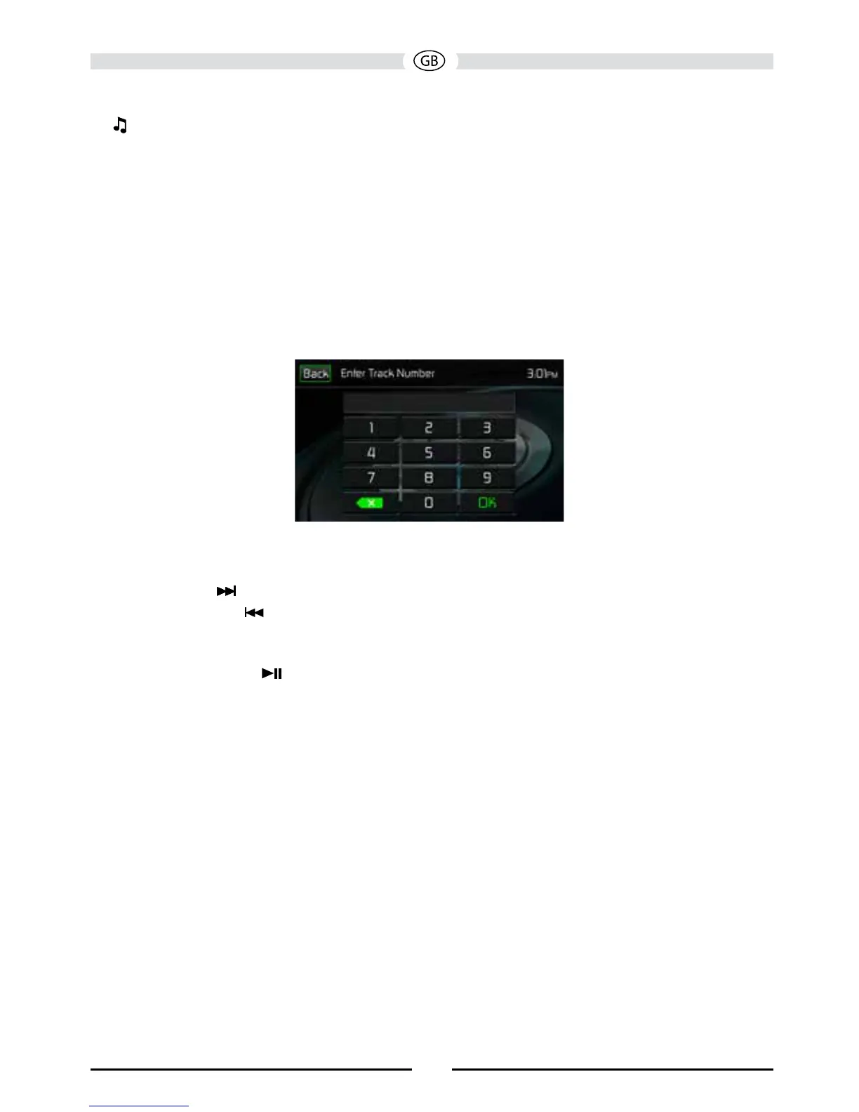 iPod®/iPhone® Track Direct Entry Screen