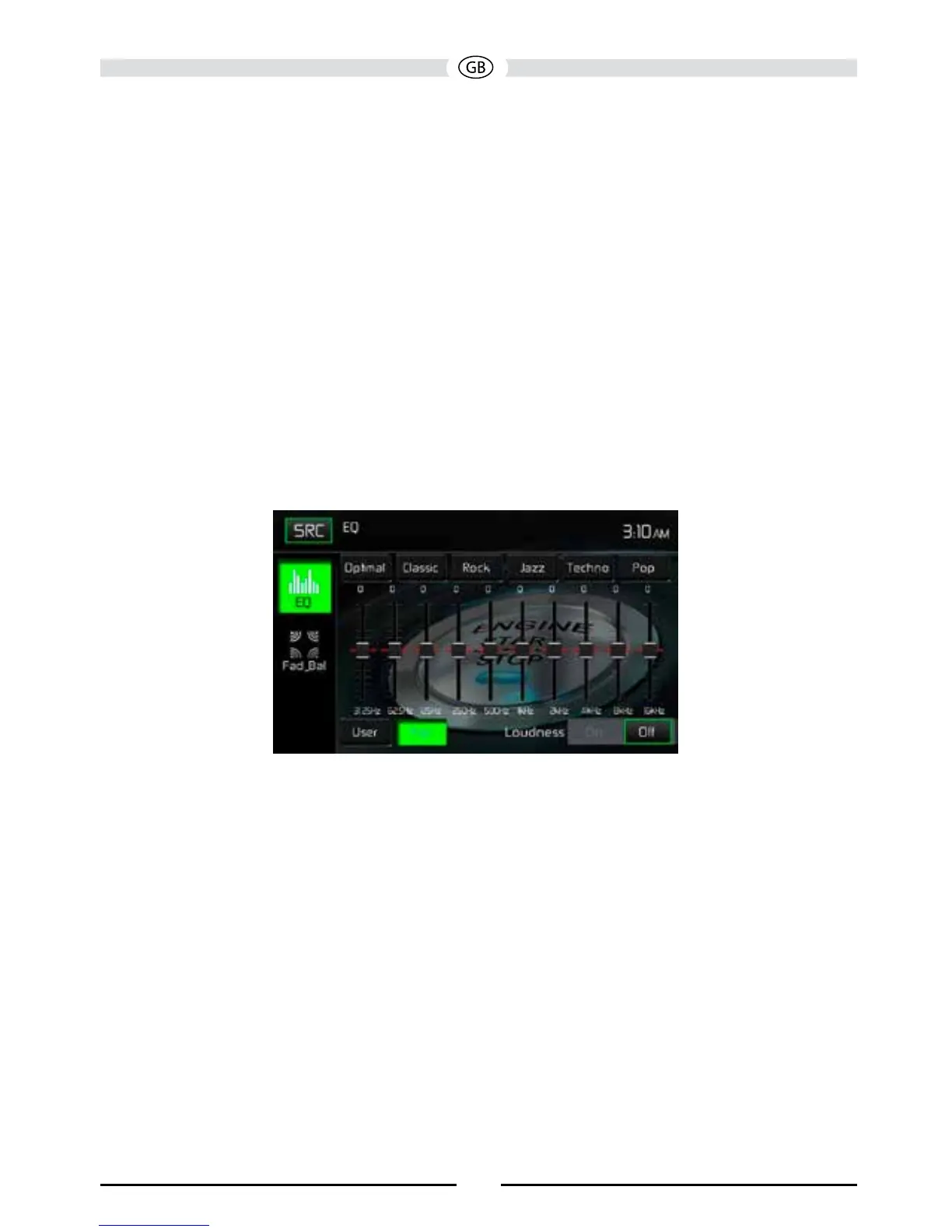 Radio, USB/iPod®, AV-IN1, AV-IN2, BT) is also adjusted through the Equalizer adjustment screen.