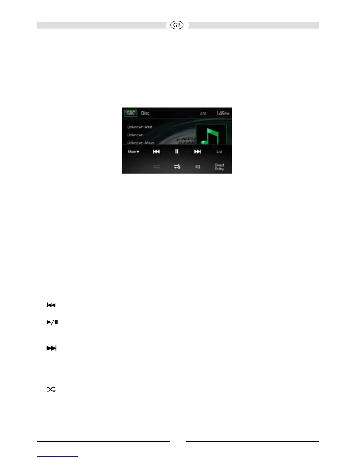 ) Play/Pause: Touch this icon to begin disc playback. Touch this icon again to pause disc