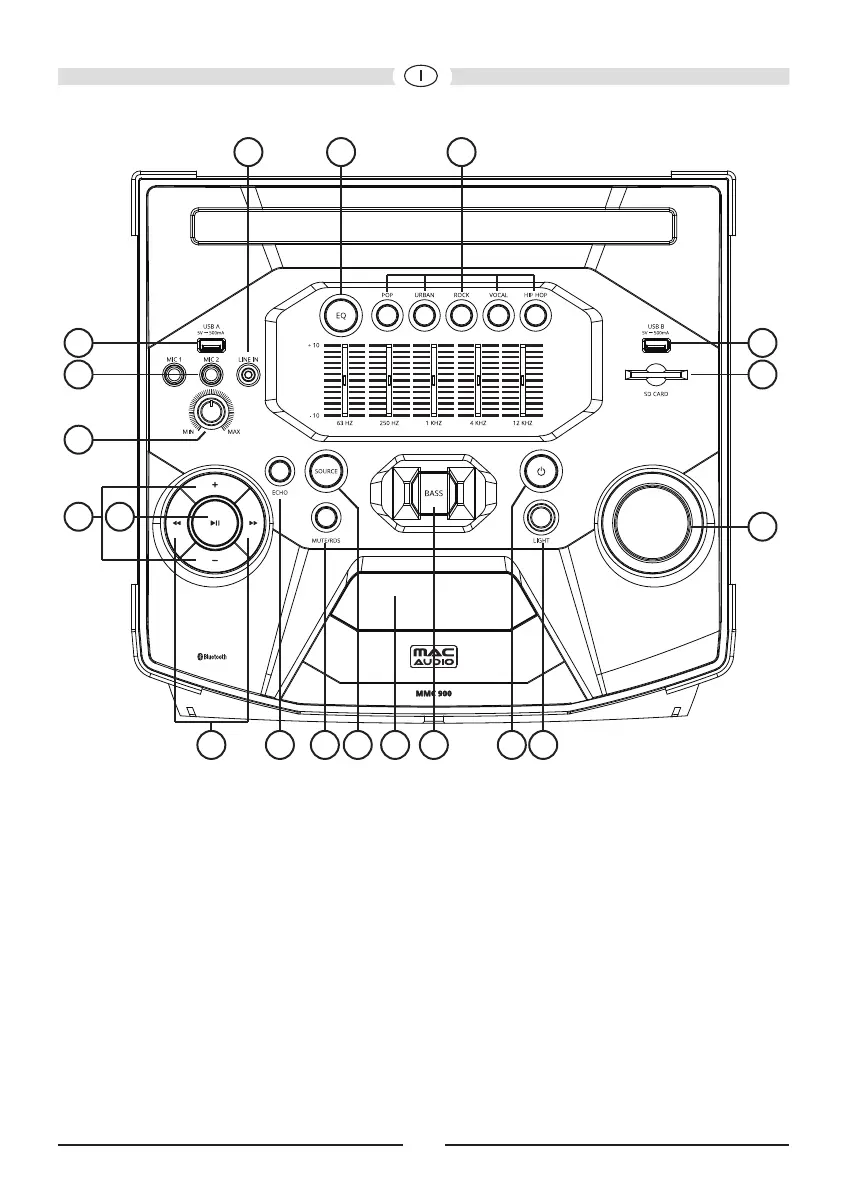 2 Bass: Bassi: Premendo il pulsante dei bassi (Bass) la potenza di uscita viene aumentata per