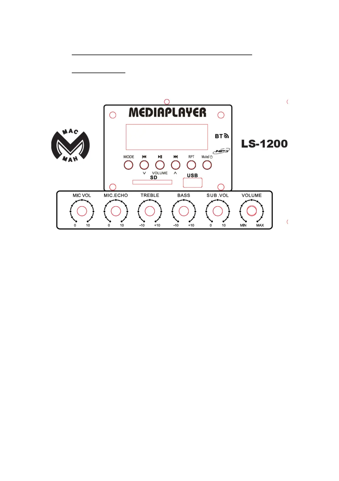 6. MUTE : Appuyez sur ce bouton pour couper le son du lecteur USB/BT.