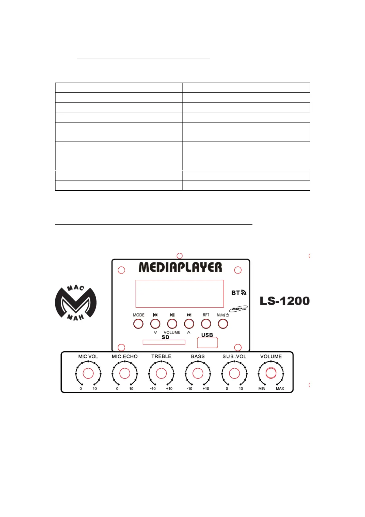 USB/BLUETOOTH PLAYER – CONTROL PANEL
