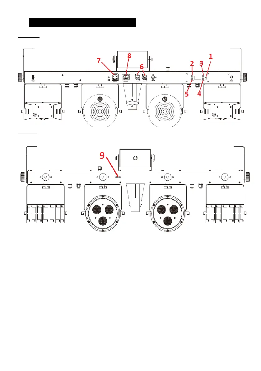 6. DMX input & output : Pour la connexion du câble DMX d’arrivée et de sortie