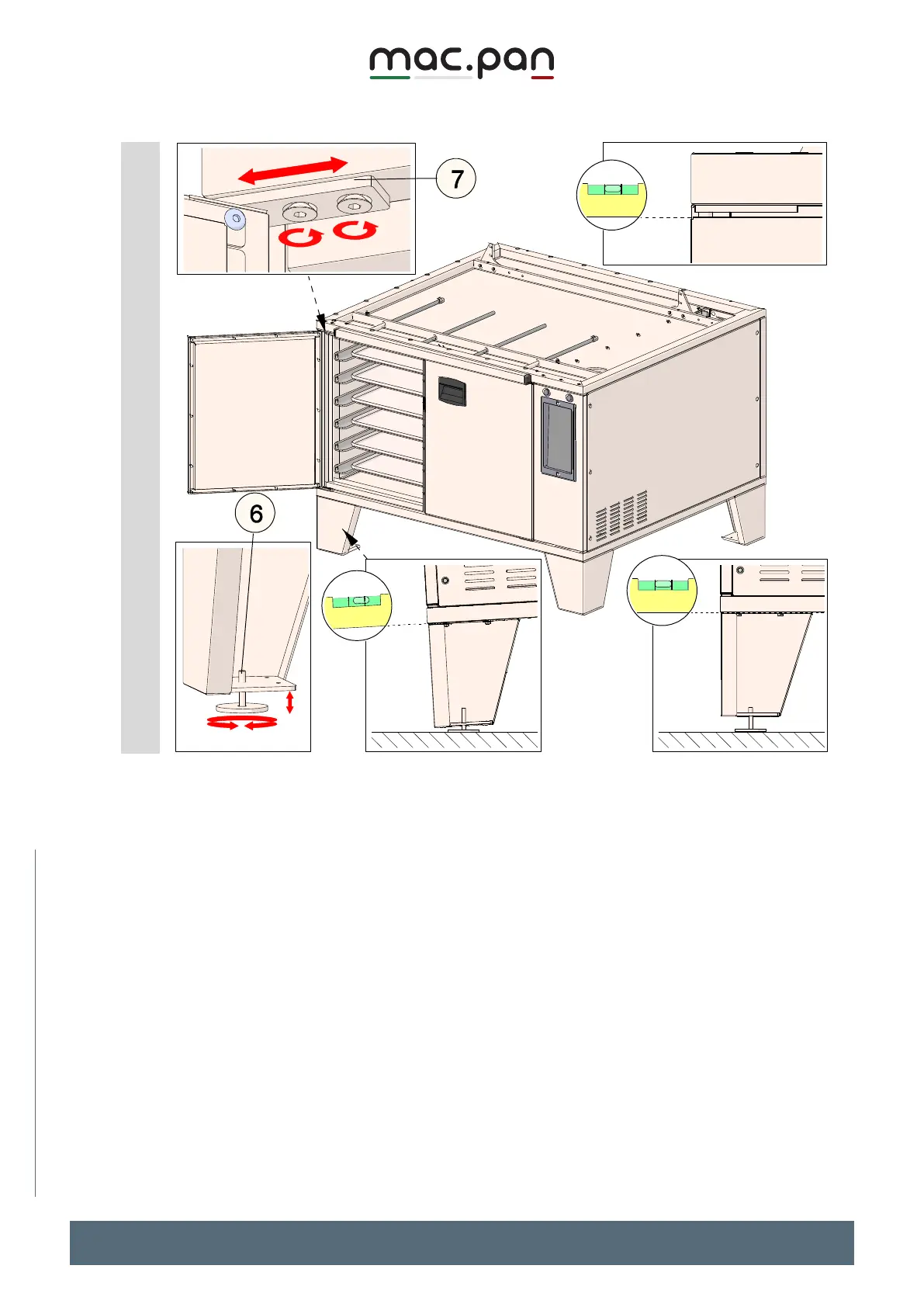 Use the adjustable feet (Pos.6) to level the structure correctly.