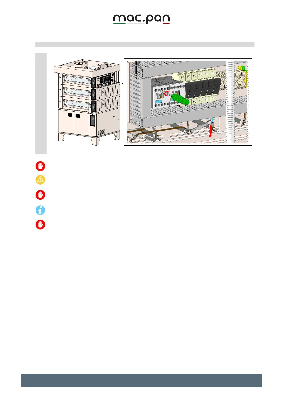 Make sure that all the terminals of the different electrical parts installed on the panel are
