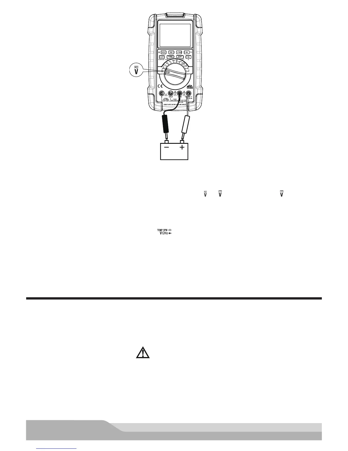 • Presione el botón “DC/AC” (CC/CA) para seleccionar la medición de tensión de CA o CC; la pantalla