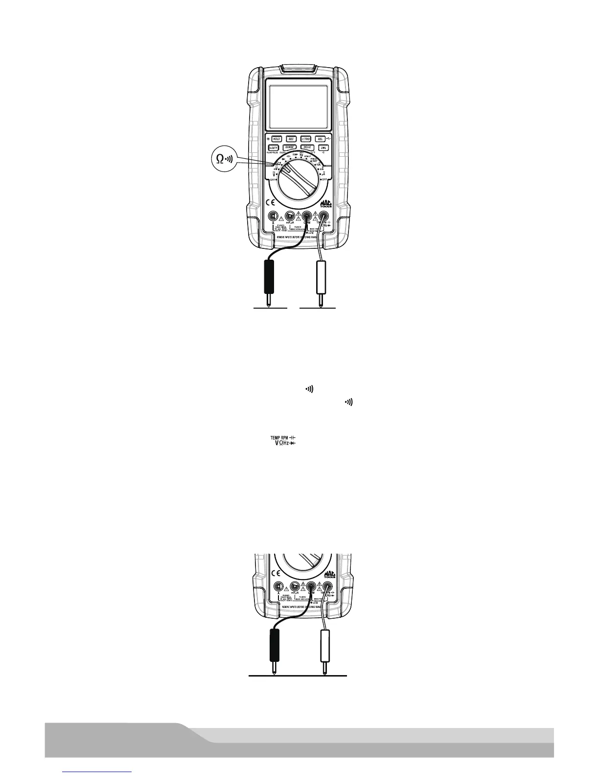 Si el circuito está cerrado (resistencia < aprox. 40 Ω), el medidor emitirá un alarma sonora. Si el circuito está