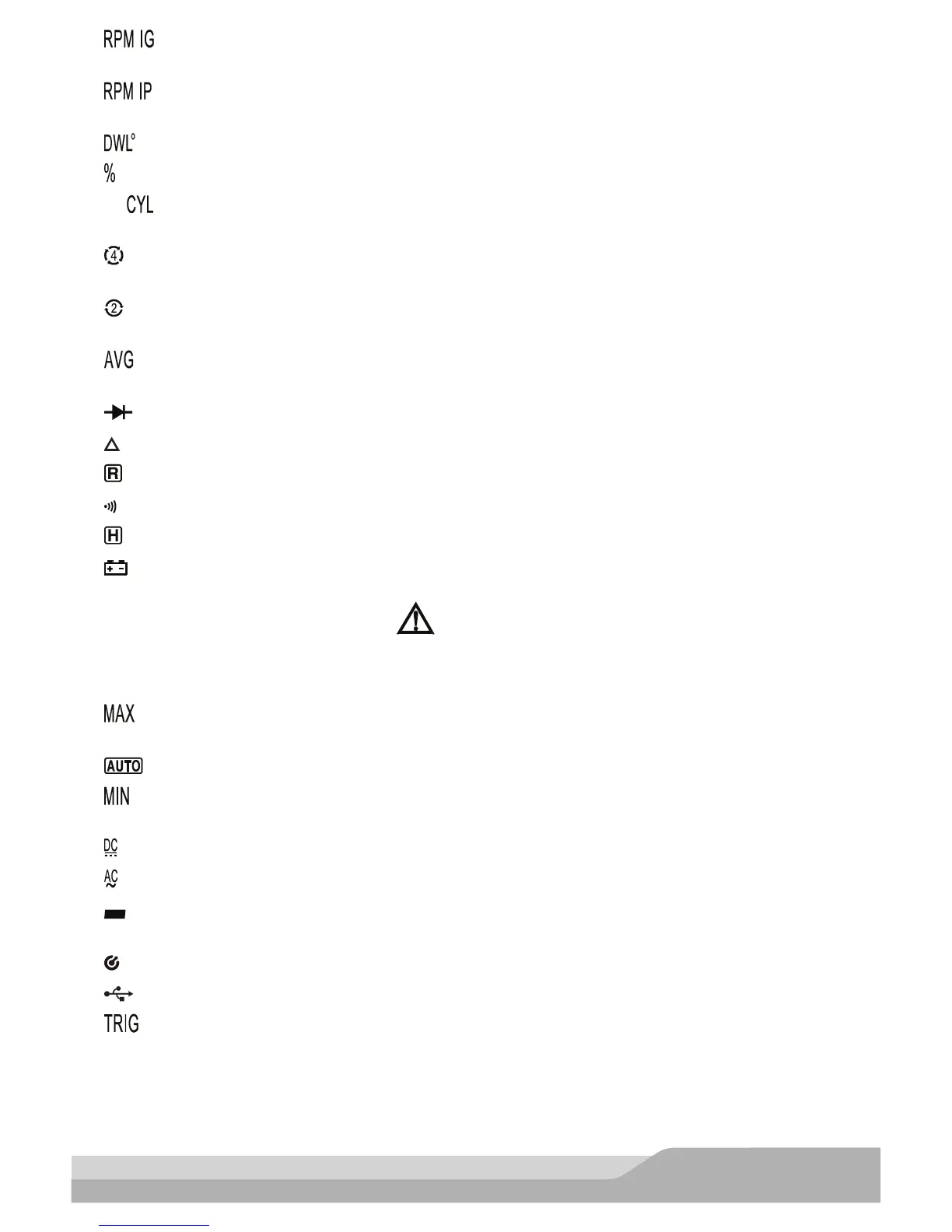 23. . Displayed when a – or + trigger slope is selected while the meter is in the RPM IP or RPM IG (Duty