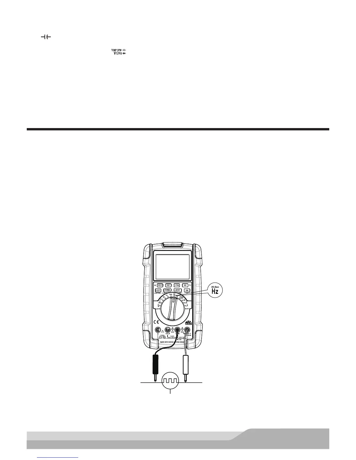This meter has two frequency measurement modes: the High-Sen (high sensitivity – trigger level of