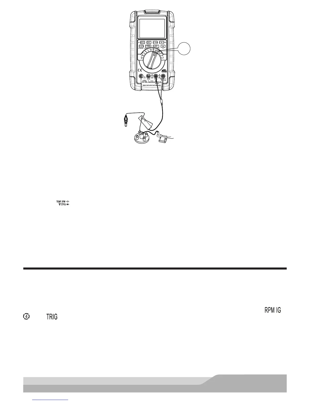 RPM can be measured using the test probes connected to the primary side of a conventional distributor-type ignition
