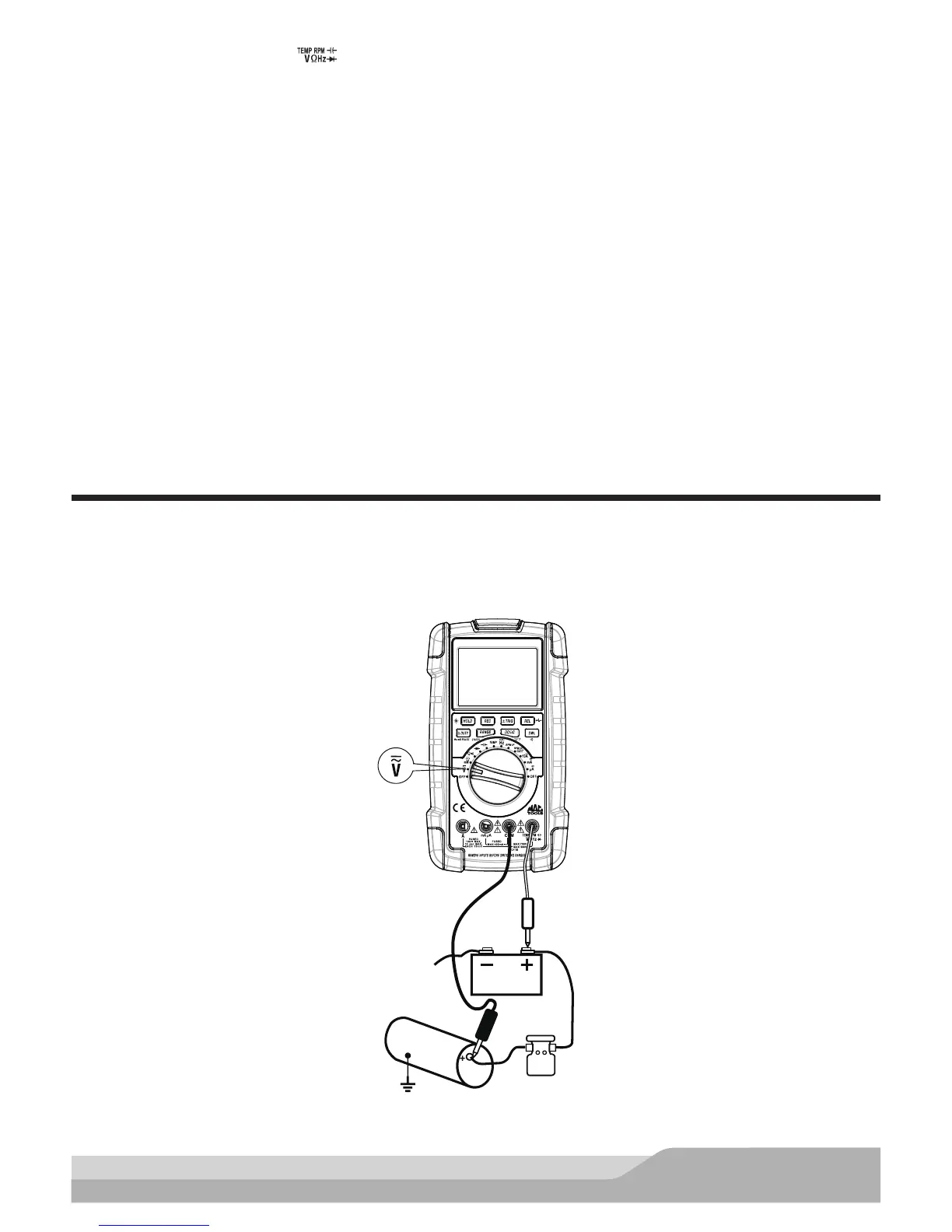 • Red test probe to the positive (+) battery post.