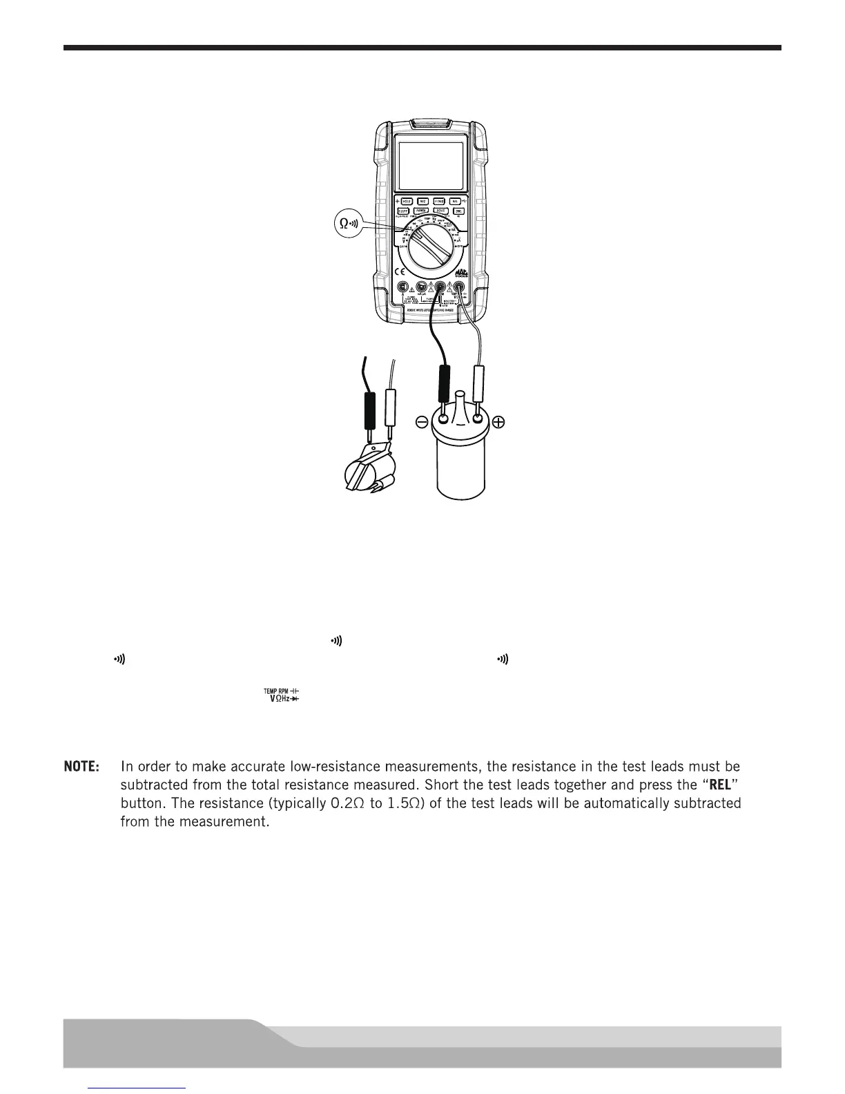 • Black test probe to the negative (-) terminal on the coil.