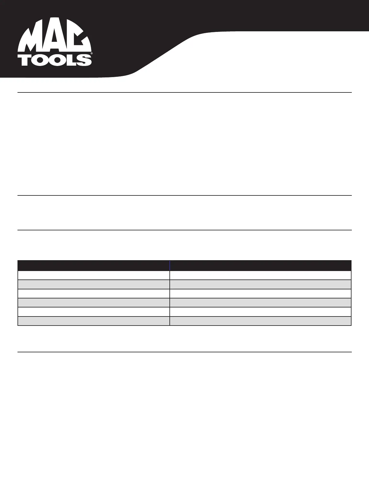 If you have any questions about warranty service, please contact Mac Tools. This warranty gives you specific legal rights and you may also have other rights