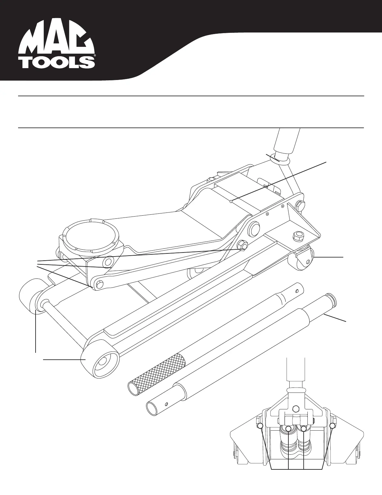 IMPORTANT: Service jacks are designed for lifting purposes only; always support raised load with jack stands.