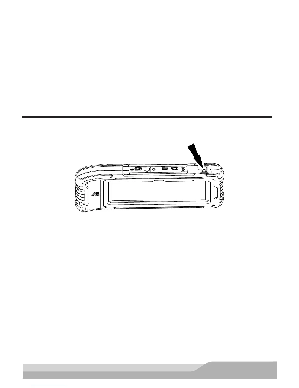 The handset is a ruggedized touchscreen tablet equipped with the Android operating system. The power button