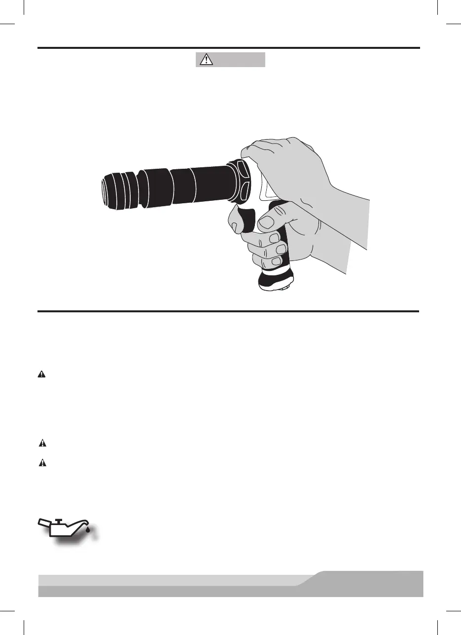 ADVARSEL: For mye olje i verktøyet slippes ut med en gang fra eksosåpningen. Husk alltid å rette eksosåp-