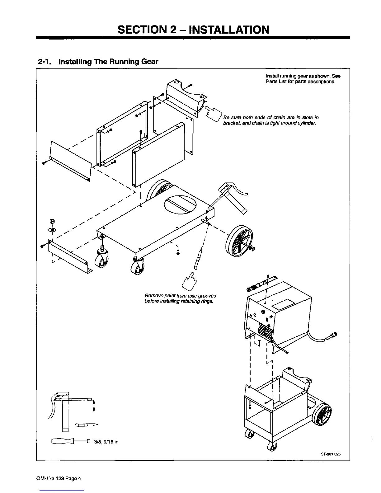 MAC TOOLS MW 145 - SECTION 2 - INSTALLATION; 2-1. Installing The Running Gear