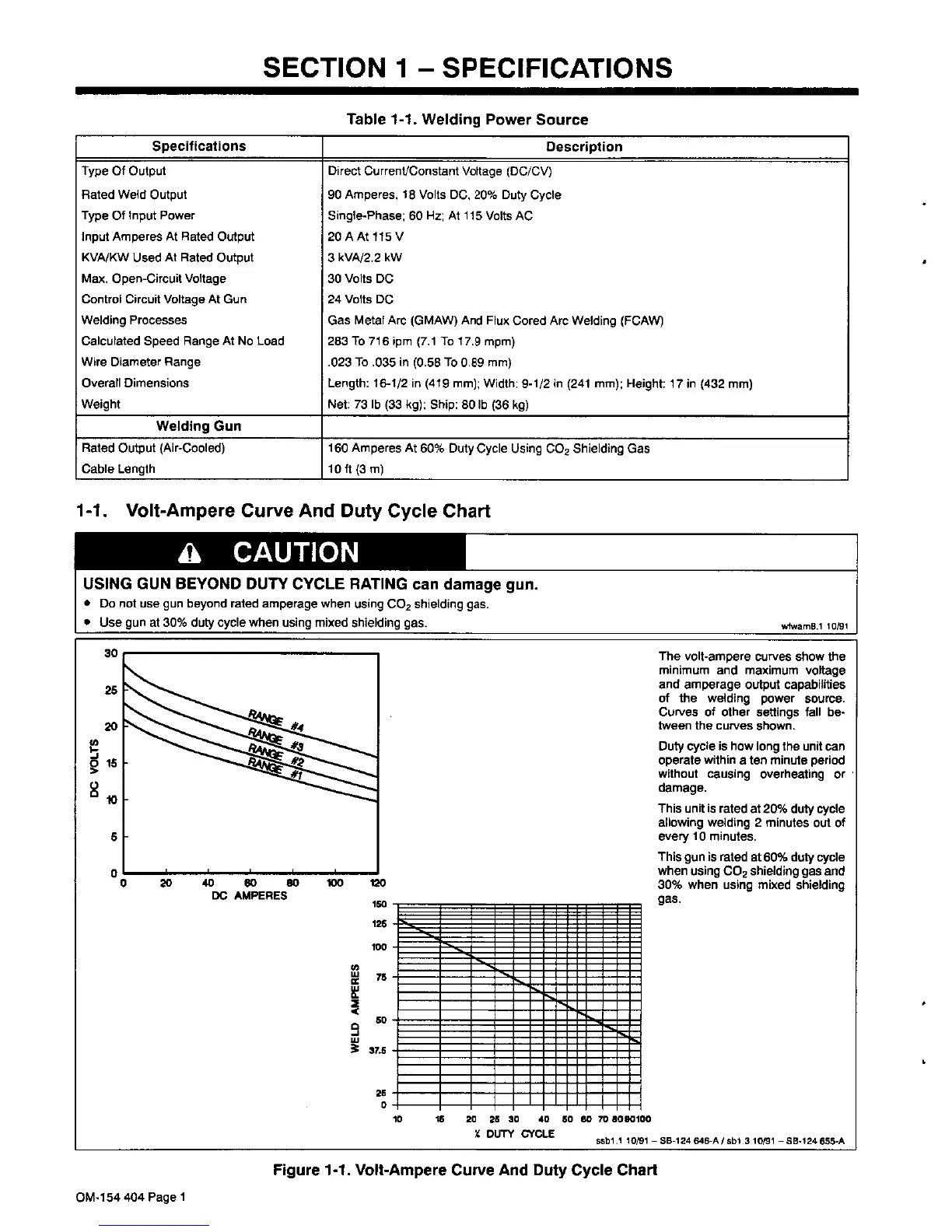 MAC TOOLS MW130 - SECTION 1 - SPECIFICATIONS; Volt-Ampere Curve and Duty Cycle Chart