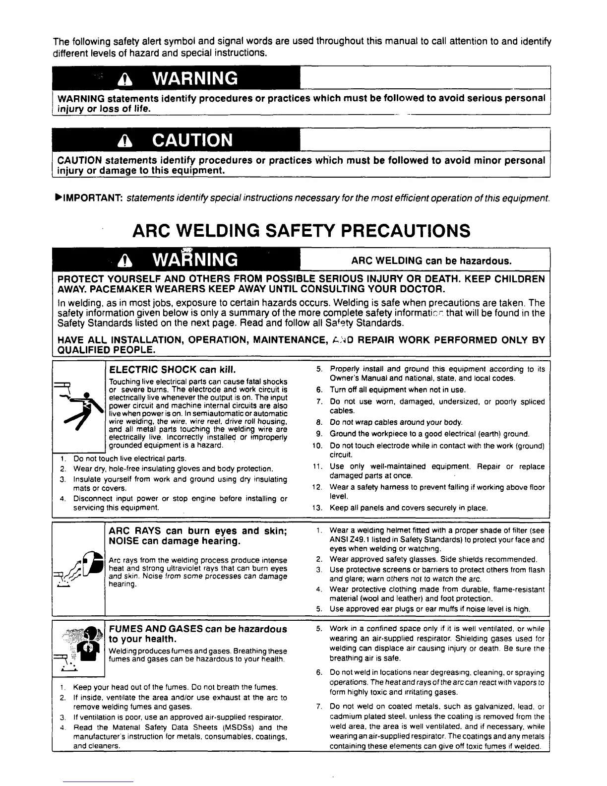 MAC TOOLS MW13O - Arc Welding Safety Precautions